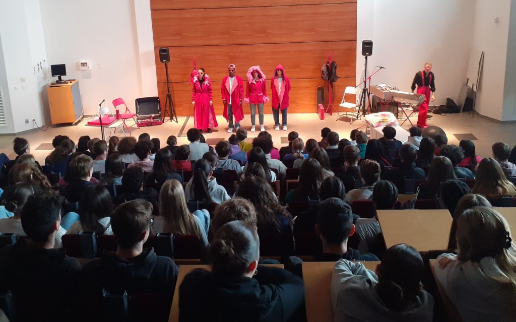 La compagnie Structure Trouble a joué 2 représentations de leur spectacle « Kama Vortex » accompagné d’un débat avec les élèves auquels nous avons participé après chaque représentation.