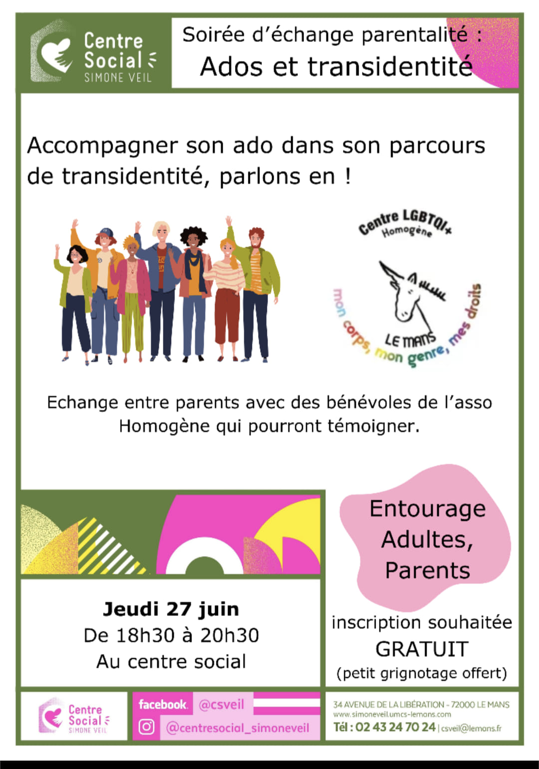 En coopération avec le Centre Social Simone Veil, un temps d’échange sur le sujet d’adolescence et la transidentité. Cet atelier est à destination des parents/famille adulte des adolescents/jeunes adultes transgenres.