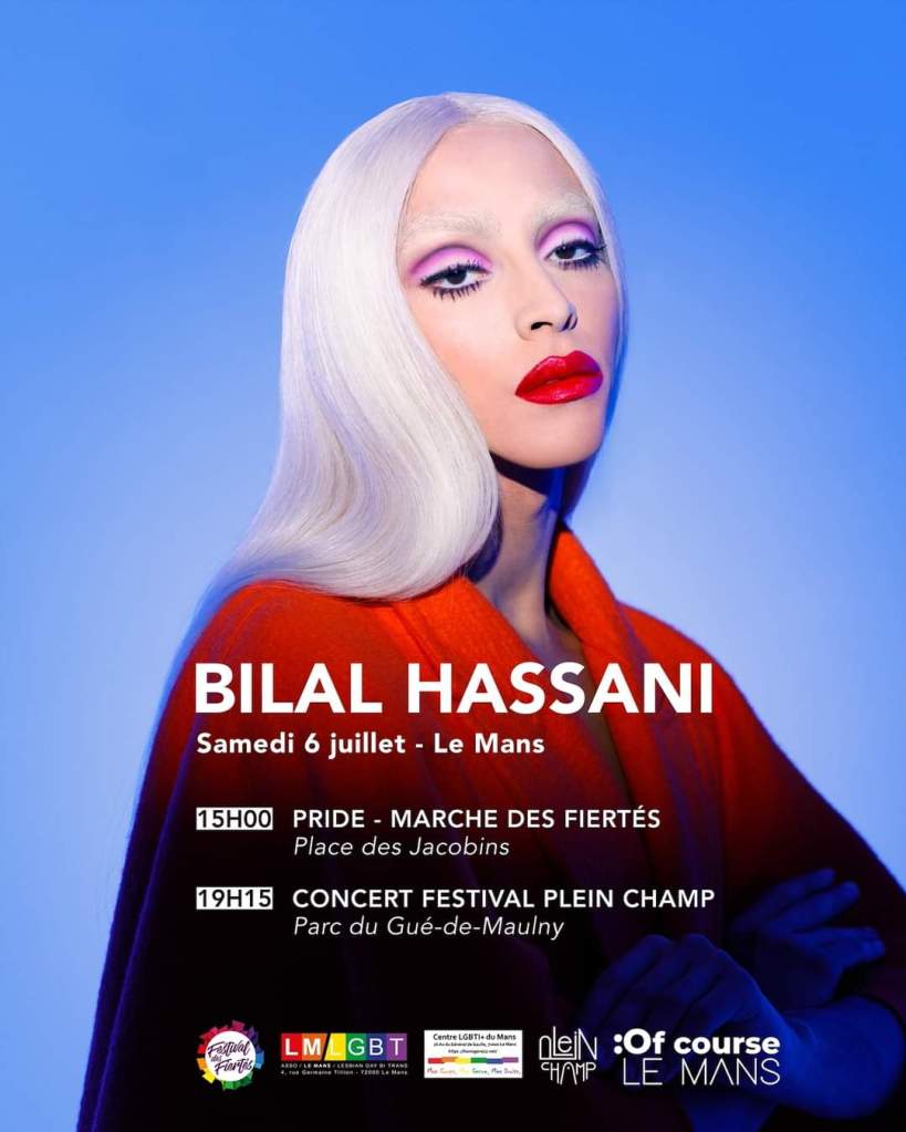 18H Et pour finir on se retrouve au le parc du Gué-de-Maulny, Festival Plein Champ à partir de 19h avec un stand de l’association Homogène centre LGBTI+ du Mans et concert de Bilal Hassani a 19h