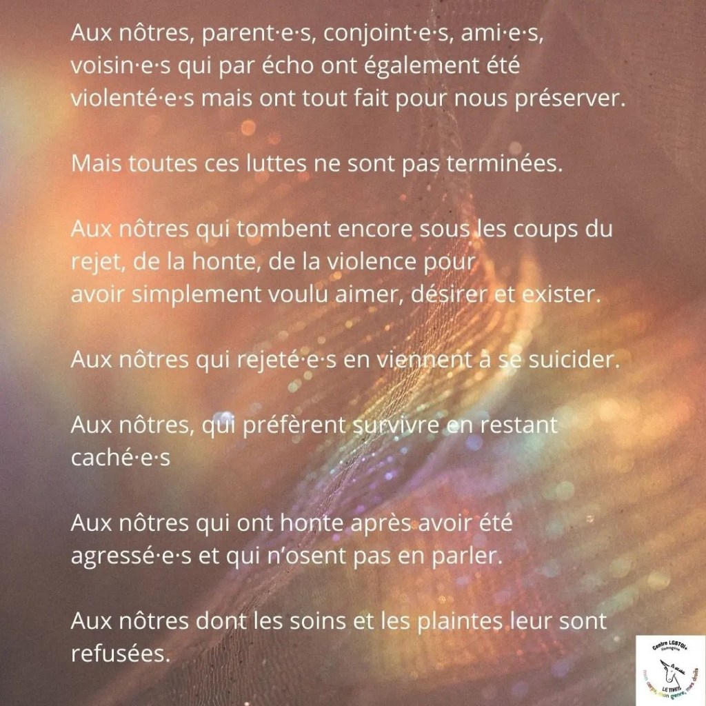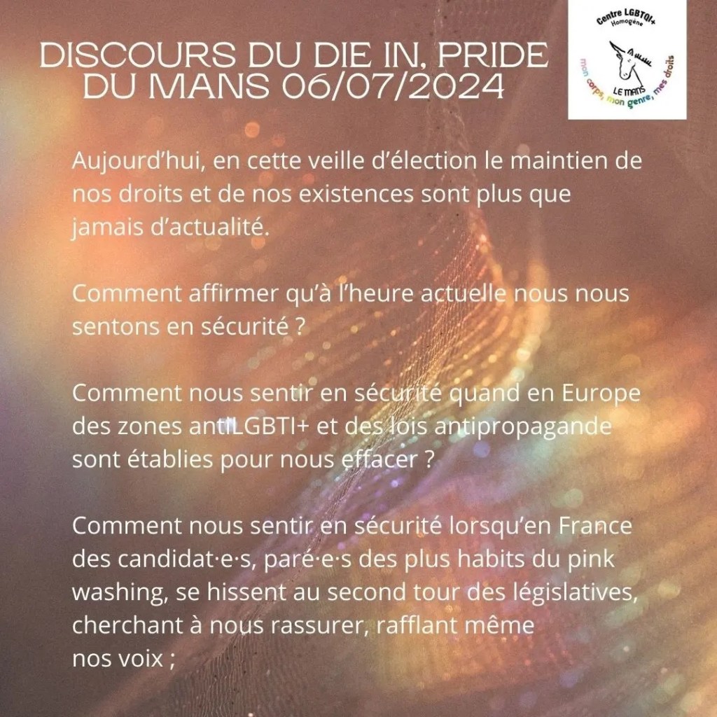 Nous partageons ici le texte du discours militant, lu au moment du Die In lors de la marche de la Pride du Mans.