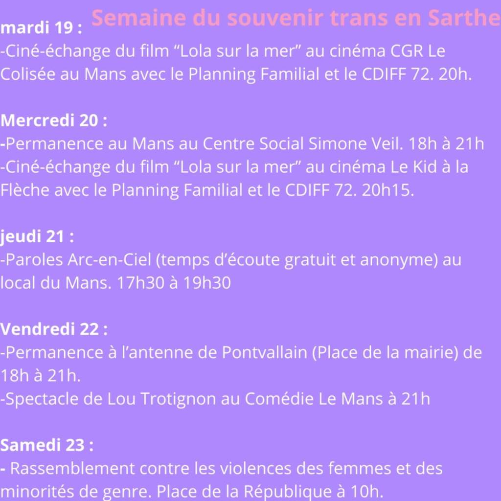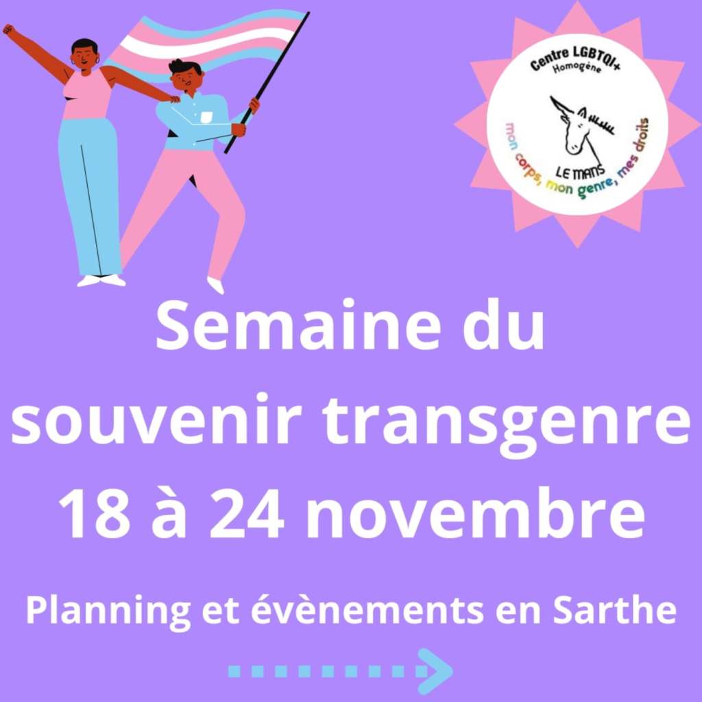 Cette année, Homogène-Centre LGBTI de la Sarthe et ses partenaires vous proposent une semaine d’événements pour rendre hommage, se sensibiliser, se ressourcer et pour agir pour les droits des personnes trans!