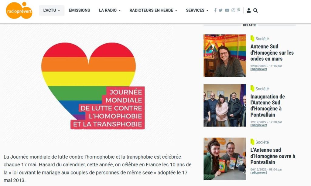 à l’occasion du 17 Mai l’Antenne Sud d’Homogène et Radio Prévert sud-Sarthe ont décidé de lancer des podcasts sur les thèmes LGBTQIA+ ![]()