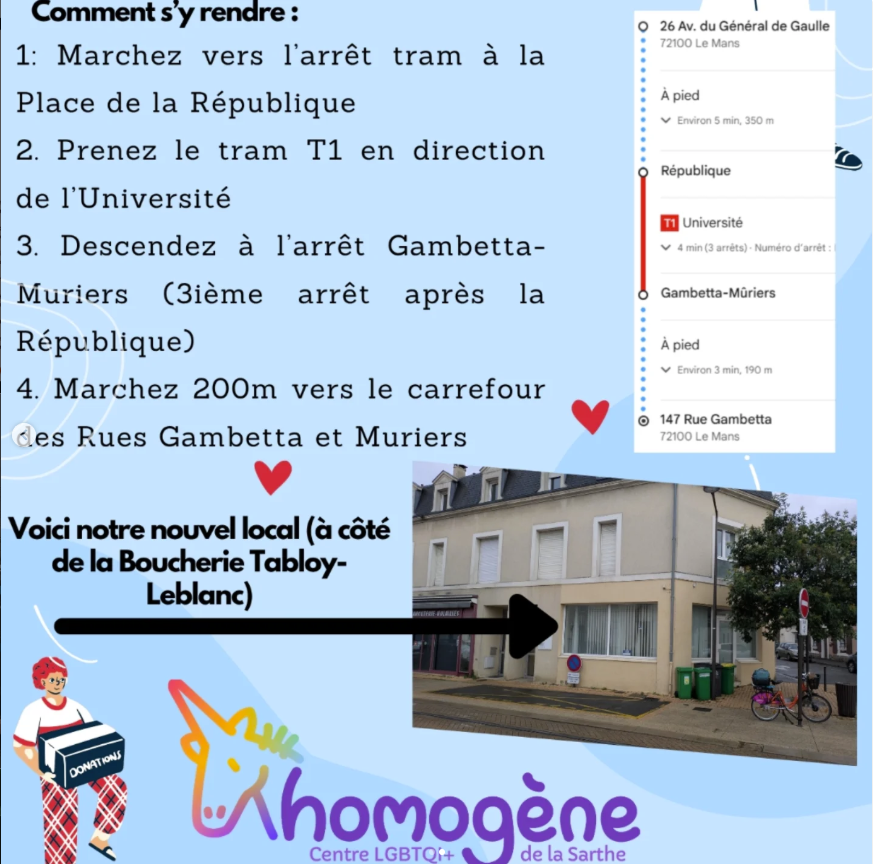 L’antenne du Mans d’Homogène Centre LGBTI de la Sarthe quitte son local actuel à la place des Comtes du Maine